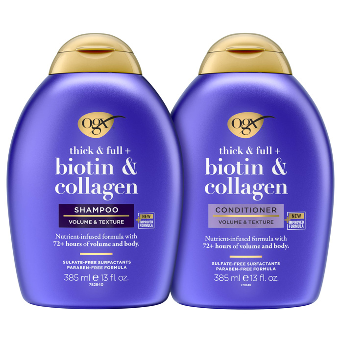 Cặp Dầu Gội - Xả OGX Biotin & Collagen Tím Làm Dày Tóc 2x385ML [Hàng Cty - Free VAT]