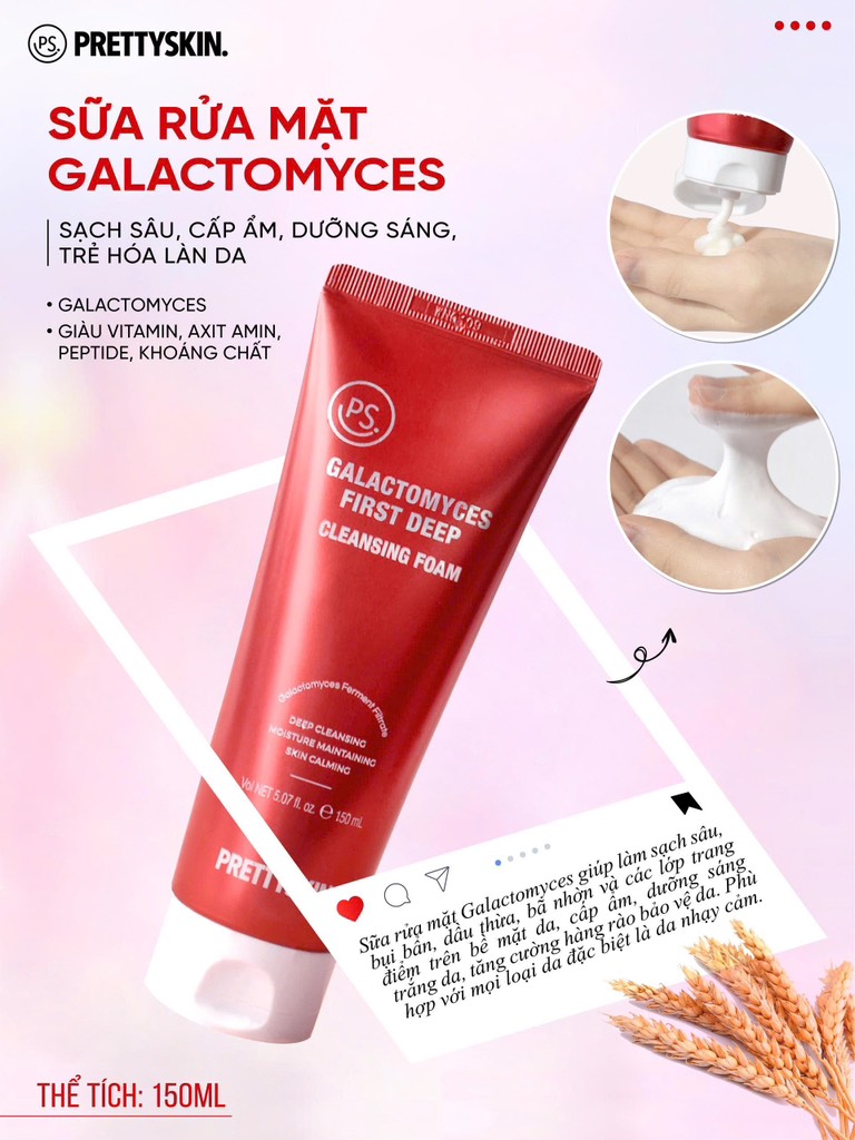 Sữa Rửa Mặt Trắng Da Galactomyces Prettyskin [Cty - Free VAT]